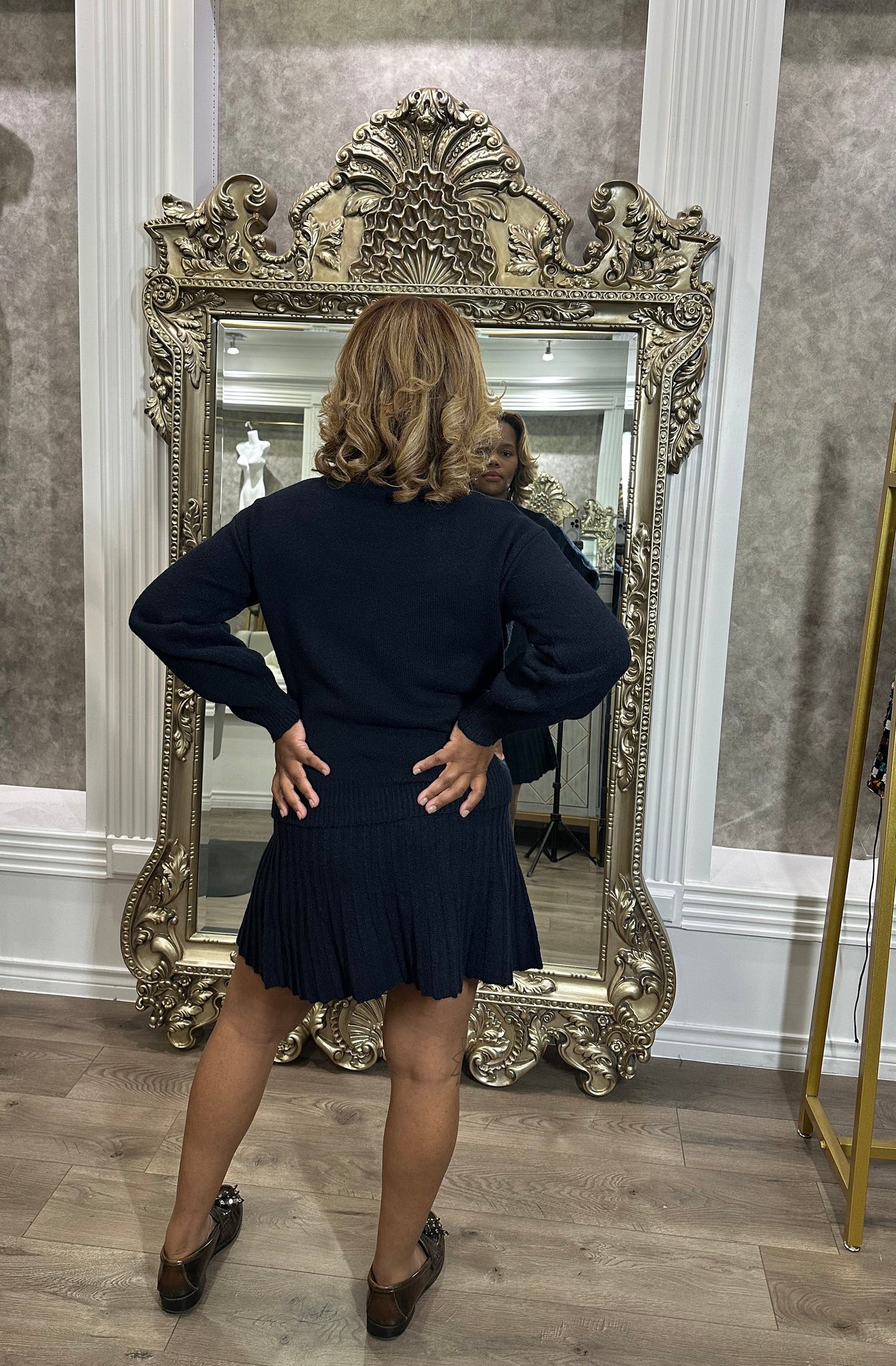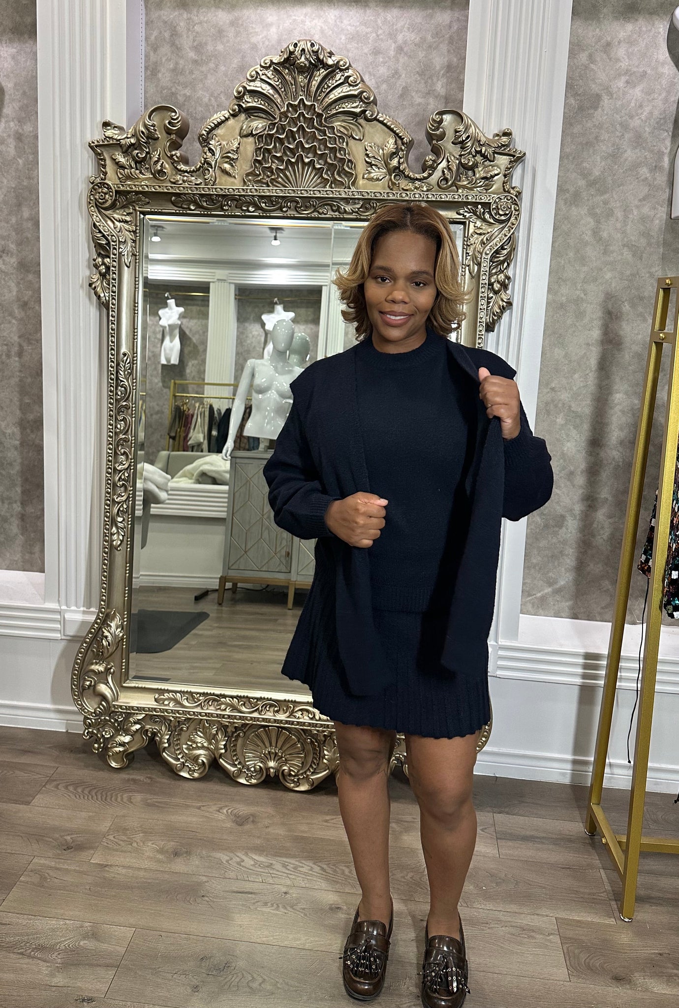 This sweater and skirt set gets a chic upgrade with this soft knit sweater. Complete with a built-in scarf-inspired detail draped across the shoulders, it’s the kind of piece that looks styled without even trying. Soft knit with built-in scarf detail adds an effortless layered feel. Relaxed fit for versatile styling also works as a chic separate or a coordinated look