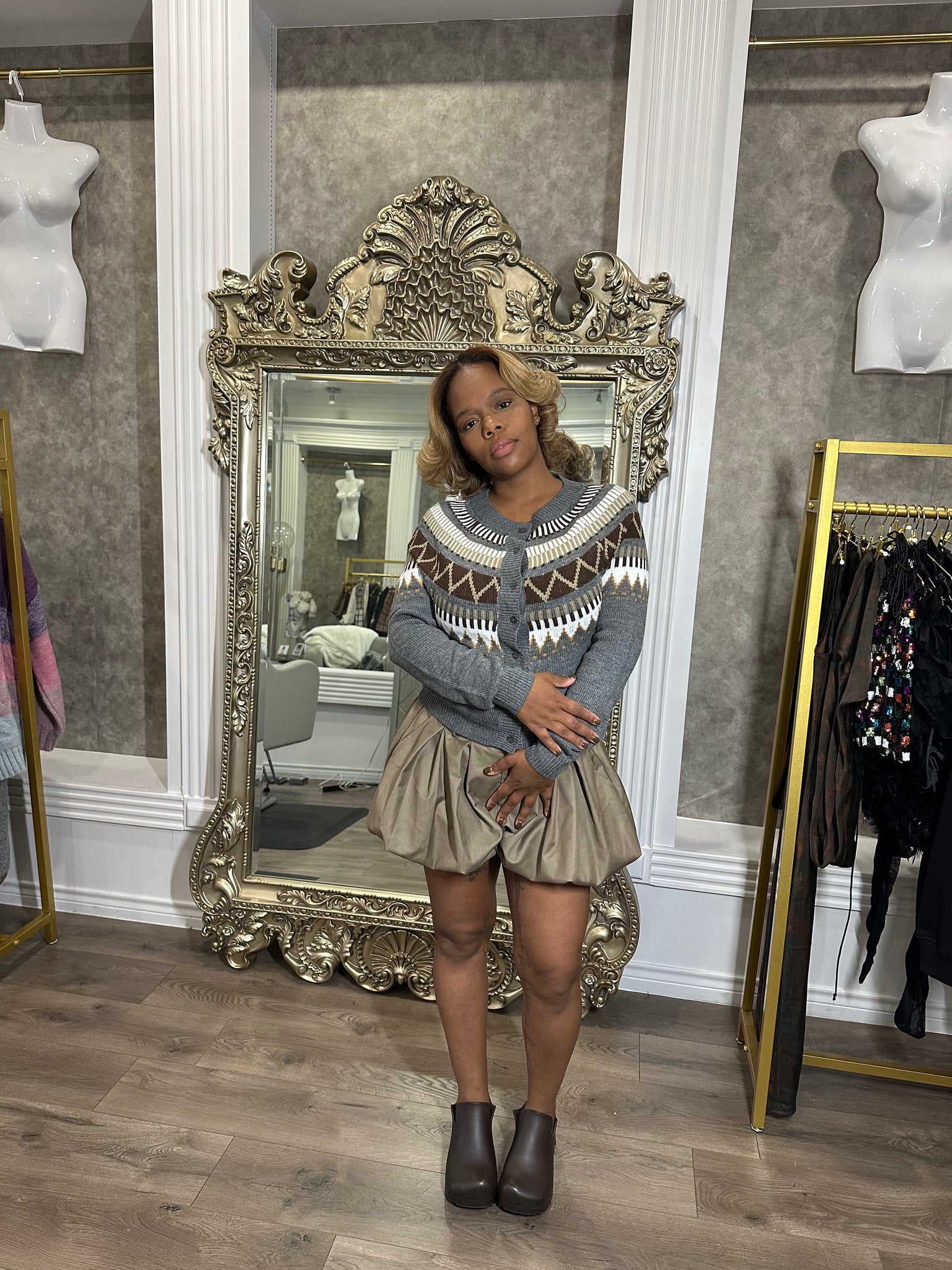 Add personality to your layers with this patterned button-down cardigan, featuring bold designs and a cozy knit feel. The button-front closure and relaxed fit make it easy to style open or closed, while the all-over pattern brings a playful yet polished touch to any outfit.
